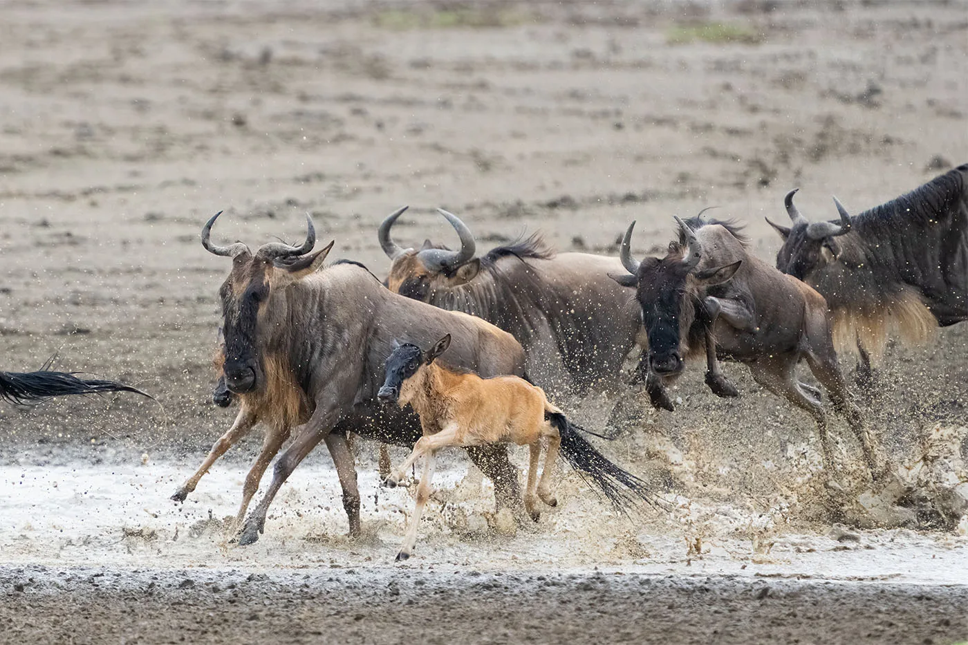 - Wildebeest calving season action